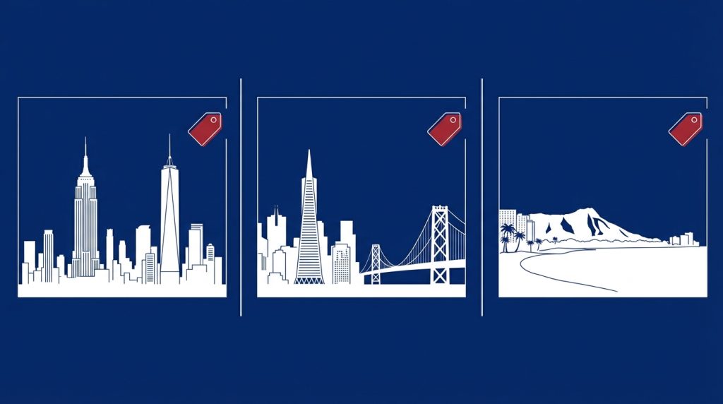 Multiple indices and housing reports tend to produce a small, recurring set of high-cost metro areas rather than a single winner. Common names are New York City, San Francisco and San Jose in the Bay Area, Honolulu, Boston, and Los Angeles. Housing and local services push these places to the top in many measures Numbeo cost of living rankings.