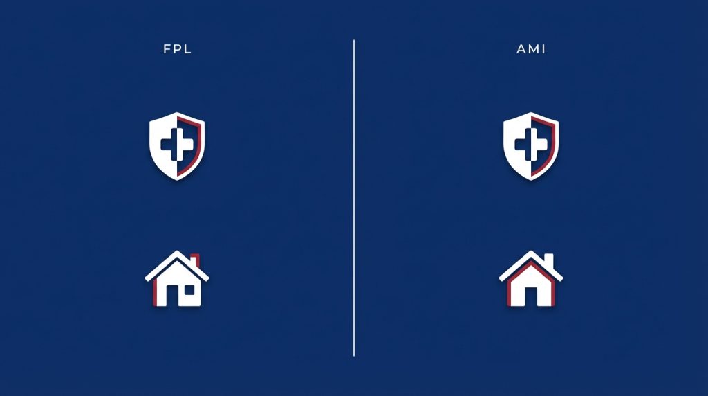 How federal poverty guidelines (FPL) and AMI differ and when each applies